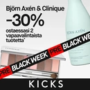 Koskee Atelier Rouge, BeautyAct, FLAER, MAKETHEMAKE, Matas Striber, Skincity Skincare, Sunny Stories, 12.–23.11. myymälässä ja osoitteessa kicks.fi.