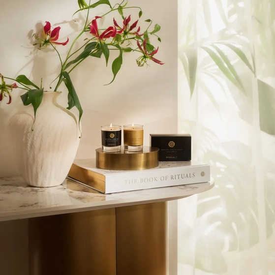 Osta yli 45 €:lla, ja saat kaupan päälle ihanan lahjapakkauksen, josta löytyy Mystic Cedar ja Cashmere Rose -kynttilät.