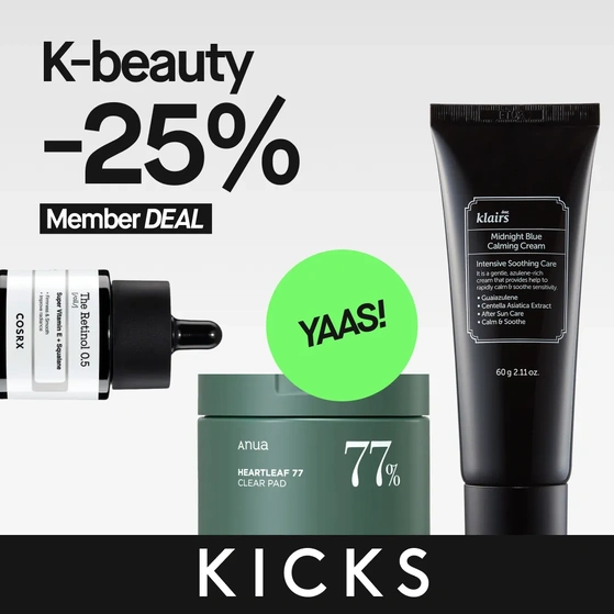Koskee Anua, Beauty of Joseon, Biodance, COSRX, Dr. Ceuracle, Hyggee, Klairs, La'dor, SKIN1004, Smuuti Skin, 9.–12.10. KICKS Club -jäsenille, myymälässä ja osoitteessa kicks.fi. Ei koske kalentereita, joululaatikoita tai Nice Price -tuotteita.