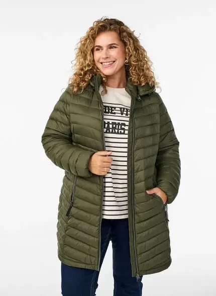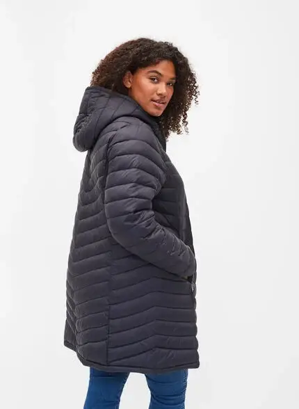 Pitempi, ohuempi kevytvanutakki, irrotettavalla hupulla ja kolmessa värissä.