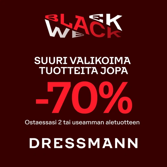 Dressmannilla on Black Week! Nyt valikoima tuotteita 50% ja 70% alennuksella, kun ostat vähintään 2 aletuotetta!